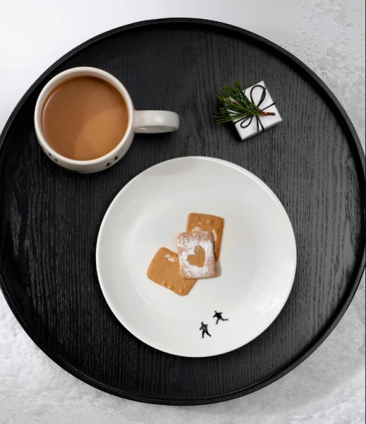 Čerstvě napadaný sníh okouzluje svět a stopy ve sněhu vyprávějí příběhy. Stopy, které jsou viditelné i hmatatelné. Jsou vytvořeny na baňatých hrncích a dezertních talířích kolekce joy snow tracks pomocí pískovaného gravírování. Dekorace na a ve sněhobílém novém kostním porcelánu vyprávějí příběhy ze zimního lesa: o jelenech a lidech lyžujících v lese, procházkách, bruslení, malování sněhových obrázků nebo přinášení domů vánočního stromečku.